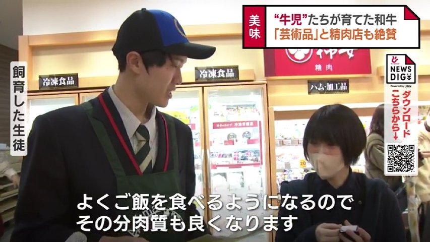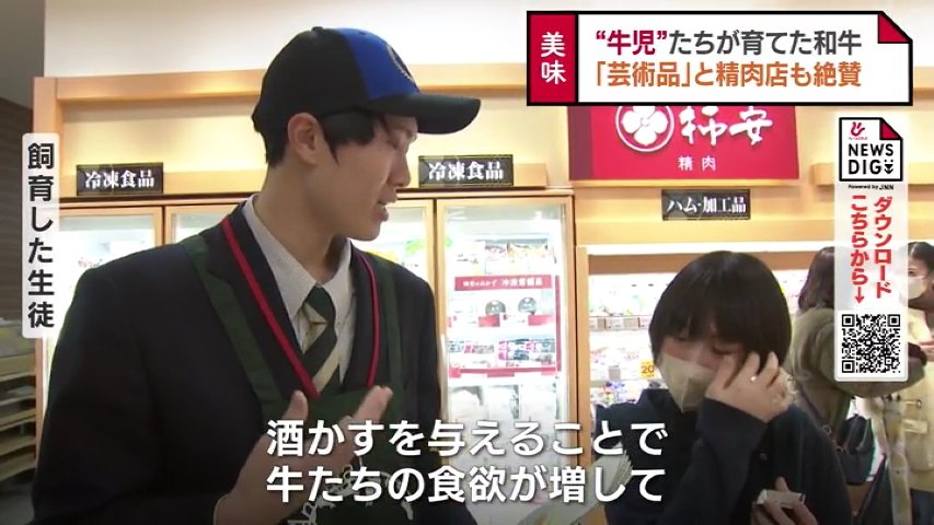 高校生:「酒かすを与えることで牛の食欲が増して、よくごはんを食べるようになるので、その分肉質もよくなります」