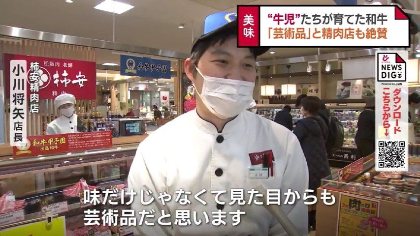柿安精肉店 小川将矢店長:「赤と白のコントラストがきれいなものほどいいお肉なんで、味だけじゃなくて見た目からも芸術品だと思います」