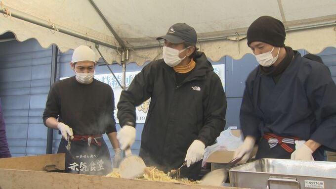 24日、氷見市では、俳優の舘ひろしさんらおよそ60人が炊き出しを行いました。舘さんは去年末、映画の撮影で石川県の輪島市や氷見市を訪れていて今回は、その恩返しの気持ちを込めて被災地で炊き出しを行いました。舘さんが自ら調理した焼きそばや、氷見牛を使ったハヤシライスなどをおよそ700人分ふるまい住民らを元気づけました。
