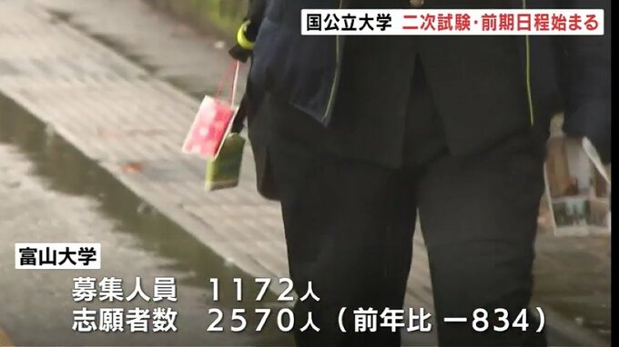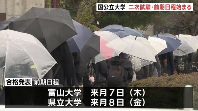 国公立大学・二次試験の前期日程が25日始まり、富山県内でも富山大学と富山県立大学で受験生が試験に臨んでいます。