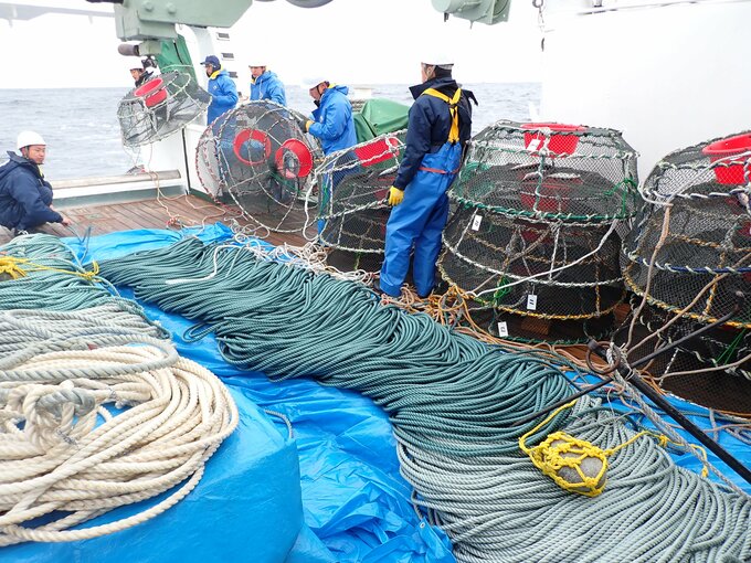 富山県水産研究所は2011年から毎年、富山湾中央部び位置する石川県能登町の沖合にカニかごを設置し、ベニズワイガニの個体数の調査を行っています。