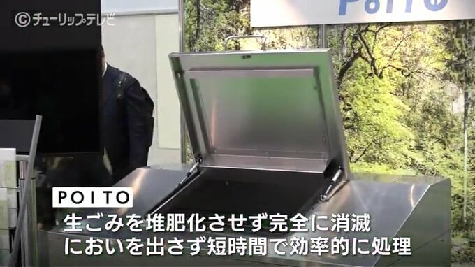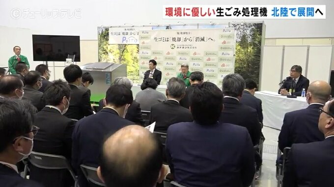 微生物の力で廃棄された生ごみを水に分解する環境に優しい生ゴミ処理機が29日、富山市で披露されました。