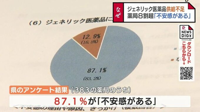ジェネリック医薬品の供給不足が深刻さを増しています。富山県内の薬局のおよそ8割でジェネリック医薬品の「仕入れなどに影響が出ている」とするアンケート調査の結果が示されました。