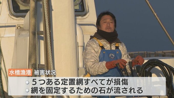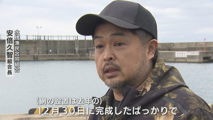 水橋漁民合同組合組合長 安倍久智さん:「(網の設置は去年の)12月30日に完成したばっかりで 初起こしが1月4日からだったんですよ。 地震発生して1回も漁ができずに回収してきた 設置したものは全部ゼロからやり直し」