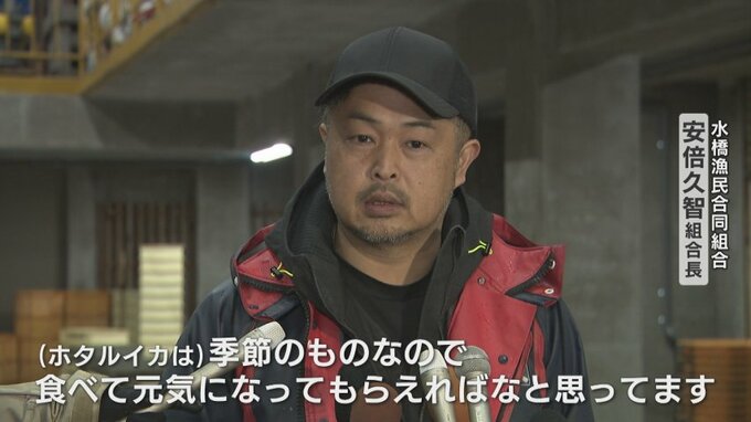 水橋漁民合同組合組合長 安倍久智さん:「(ホタルイカは)季節のものなので食べて元気になってもらえればなと思ってます」