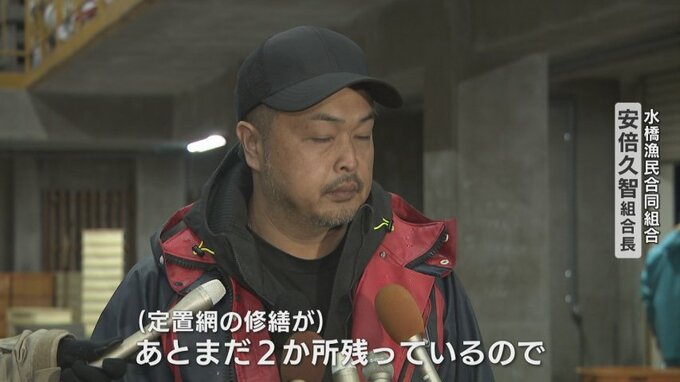 水橋漁民合同組合組合長 安倍久智さん:「無事に間に合ってホッとしたなという感じと(定置網の修繕が)あとまだ2か所残っているので、その復旧も急ぎたいなと思ってます」