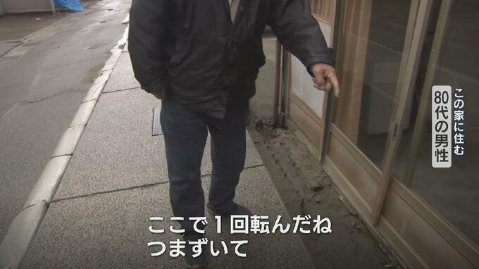 こちらの80代の男性は地盤沈下したままの家で1人で暮らしています。