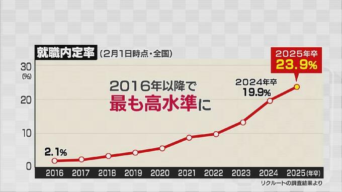 学生優位の「売り手市場」が続く中、企業側は解禁日を待たず、早期に内定を出す企業が全国的に増えているのです。