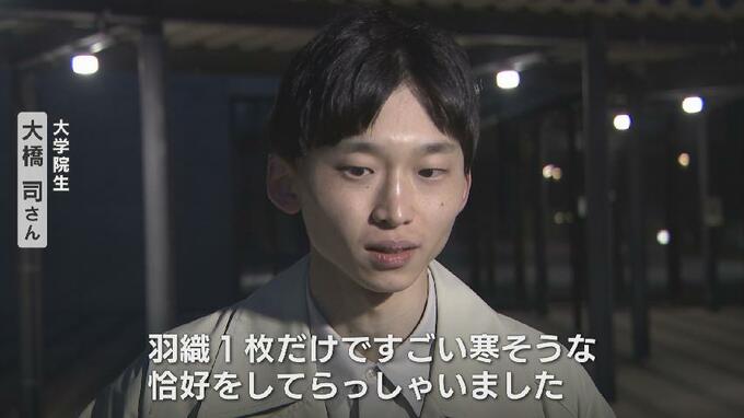 大学院生 大橋 司さん:「羽織一枚だけ着られていて、すごく寒そうな恰好をしてらっしゃいました」