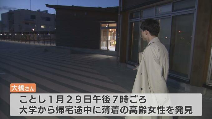 この前日、1月29日の夜にも…。富山県立大学に通う大学院生の大橋司さん(23)は午後7時ごろ、帰宅途中に薄着のまま立っている高齢の女性を見つけました。