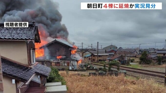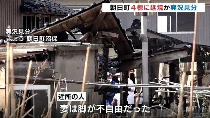 富山県朝日町で住宅など5棟を焼いた火事で、7日の実況見分では焼け跡から性別不明の遺体が見つかりました。この火事では火元の家にいた70代の女性と連絡が取れておらず、警察と消防は遺体の身元の確認を進めています。
