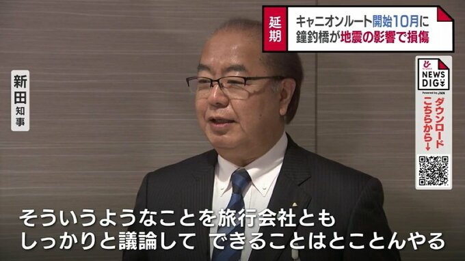 敦賀延伸後の旅行の目玉として大きな期待が寄せられていたキャニオンルート開始延期に新田知事は…。