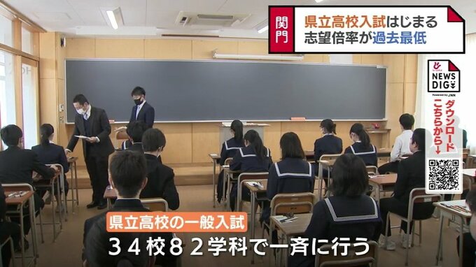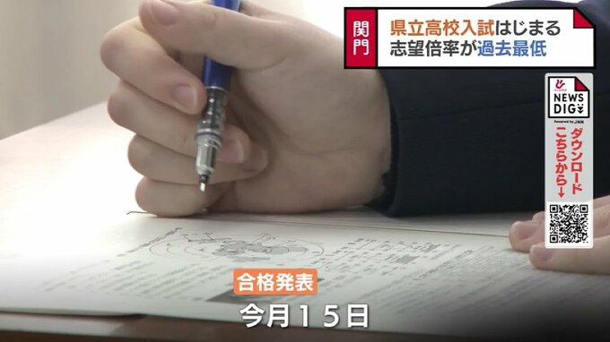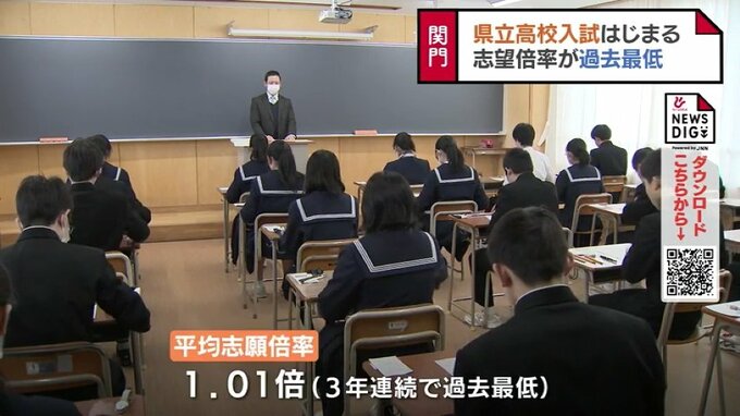 ことしの一般入試は募集人数5188人に対して5248人が志願し、平均志願倍率は1.01倍で、3年連続で過去最低となりました。