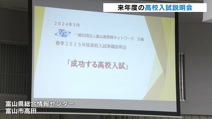来年春に高校受験を控えた新中学3年生を対象に、早くも高校入試の説明会が富山市で開かれました。