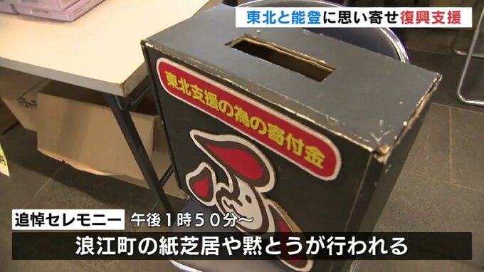 午後には追悼セレモニーを行い、東日本大震災の発生時刻の午後2時46分に黙とうが捧げられます。