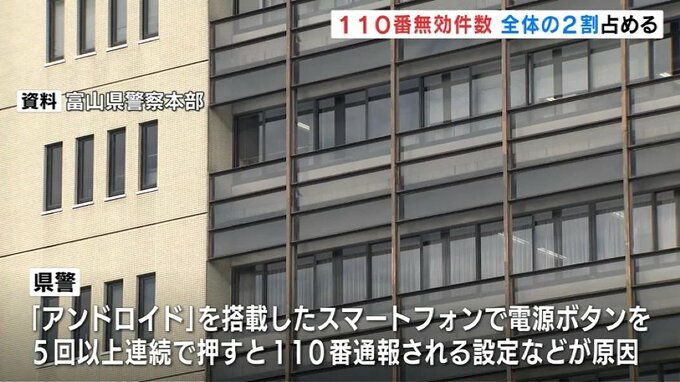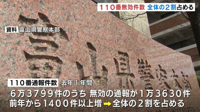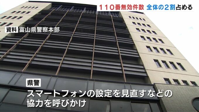 富山県内での警察110番通報のうち間違いや無言電話など無効となった通報が去年、1万3000件を超え、全体の2割を占めました。