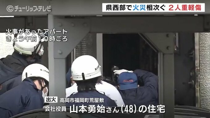 13日午前3時過ぎ、富山県高岡市福岡町荒屋敷の2階建てアパートに住む会社役員、山本勇始さん(48)から、「煙が充満して廊下に出られない」と消防に通報がありました。