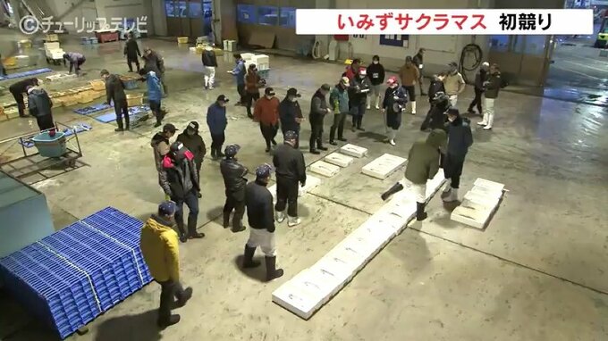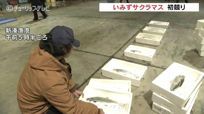 富山県射水市がブランド化を図っている「養殖サクラマス」の初競りが、14日に行われ、浜は活気づきました。