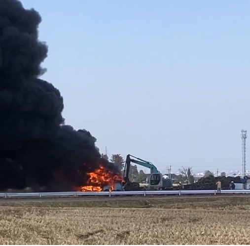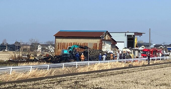 消防などによりますと現場周辺の田んぼを所有する男性が、かれ草を燃やそうと火をつけていたところ、風が強く付近にあった廃材置き場のタイヤなどに火が燃え移ったということです。周辺住民が消防に通報しました。現場には消防車8台が出動し消火にあたり約2時間後に火を消し止めました。この火災によるけが人や付近の建物への延焼はありません。