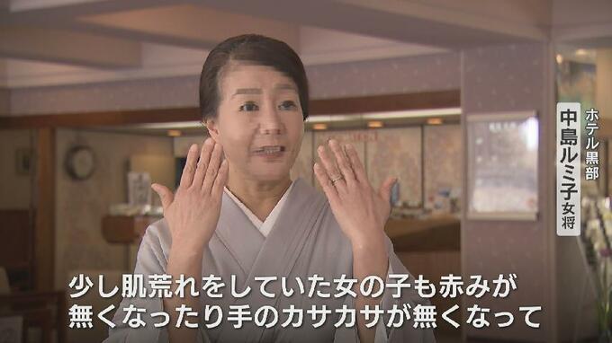 ホテル黒部 中島ルミ子女将:「少し肌荒れをしていた女性も赤みがなくなったり、手のカサカサがなくなって、もう温泉効果抜群と言っています」