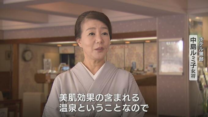 ホテル黒部 中島ルミ子女将:「本当にホッとしているのは地震の影響で万が一、温泉の湯量が少なくなったりとか、そういう悪影響ではなかったので今回は本当によかったなと思っています。美肌効果の含まれる温泉ということなので、たくさんの方に宇奈月の温泉に入りにきていただいて、より一層美肌の湯とイケメンの湯に入りにきてもらえたらと思います」