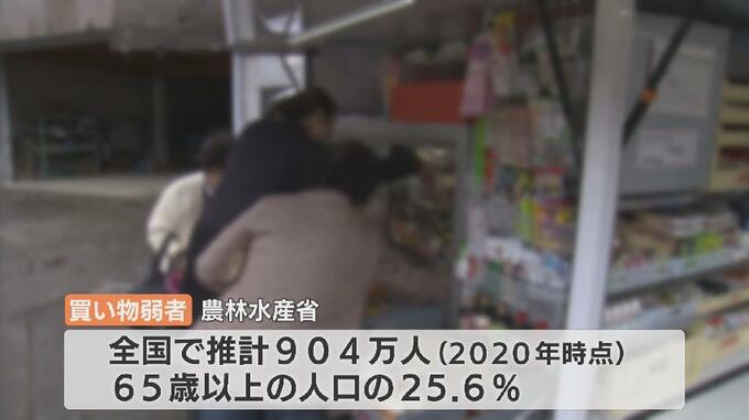 農林水産省によりますと、2020年時点の買い物弱者の推計は、全国で904万人。これは65歳以上の人口の25.6%を占めています。