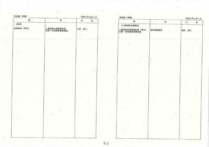 ニュースクリップ 富山県 職員人事2024【異動名簿一覧】課長級以上の女性管理職 20.2パーセント 98人を登用(2024年4月1日発令) 2024年3月22日(金) 16:00 国内 暮らし・マネー 人事委員会事務局 富山県職員異動一覧2024