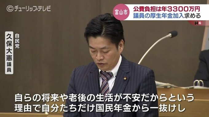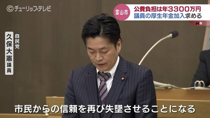 自民党 久保大憲議員:「自らの将来や老後の生活が不安だからという理由で、自分たちだけ国民年金から一抜けし、厚生年金に移りたいという姿勢は富山市議会の品位を貶め市民からの信頼を再び失墜させることになる」