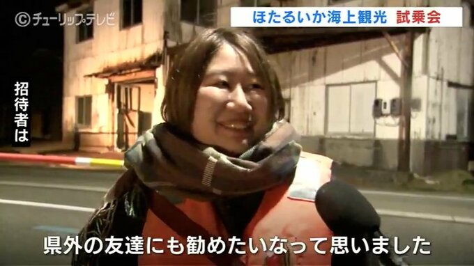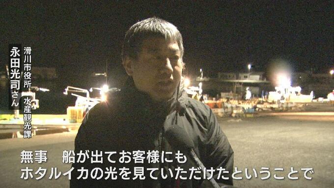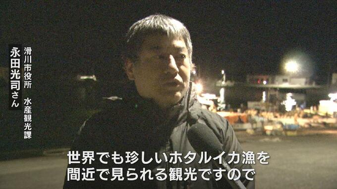 滑川市役所 水産観光課 永田光司さん:「無事 船が出てお客様にもホタルイカの光を見ていただけたということで ほっとしております。世界でも珍しいホタルイカ漁を 間近で見られる観光ですので ぜひ来られた方には楽しんでいただきたいと思ってます」