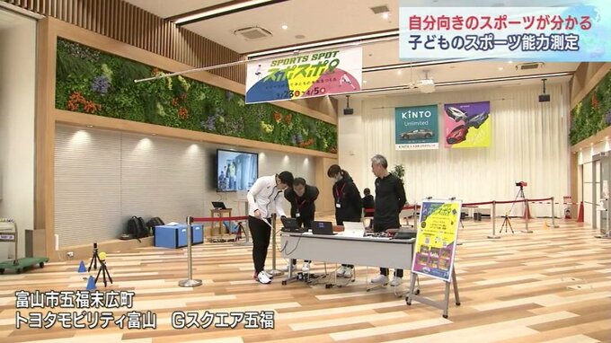 これはトヨタモビリティ富山が小学生を対象にスポーツを始めるきっかけづくりにしてほしいと開いたもので、会場では最新の機械で自分の運動能力を測定できます。