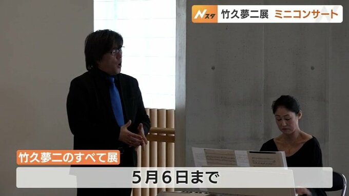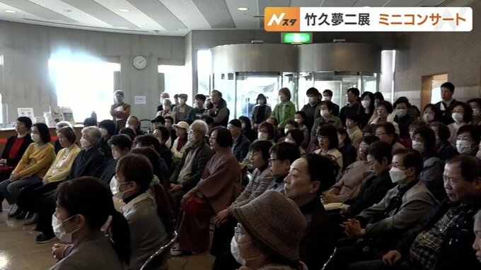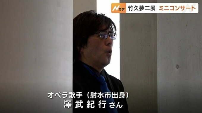 企画展に合わせて開かれたミニコンサートでは、射水市出身のオペラ歌手澤武紀行(さわぶ・のりゆき)さんが、儚い夏の恋を歌った夢二の代表曲「宵待草」やドイツ語の愛の歌「微笑みの国」などを披露。