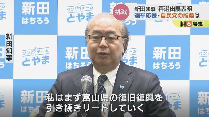 「富山県民として、未曾有の災害の時に知事として居合わせたものとして、このあとの復旧復興にも責任をもっていく、それは任期をまたぎます。知事には4年の任期しかありませんが、この任期では間に合いません。次の任期をまたぐことになるということで、私はまず富山県の復旧復興を引き続きリードしていく。そのようなためにこの秋の知事選挙に挑戦することを、さきほど後援会の場で表明したところでございます」