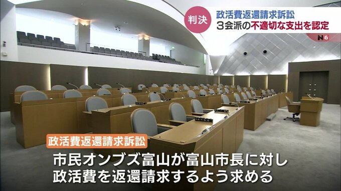 27日の判決で富山地裁の松井洋裁判長は、自民党に50万3740円、公明党に5万3600円、共産党に6000円の不正な支出を認め、市に返還請求するよう命じました。