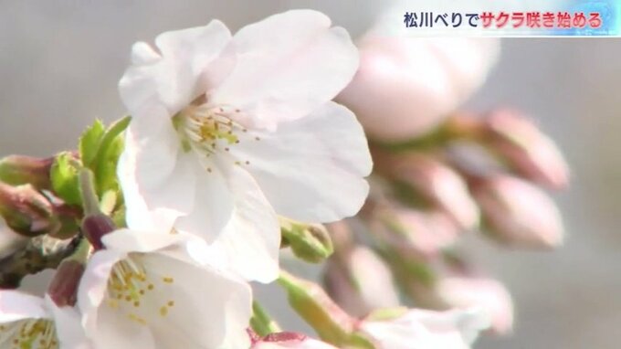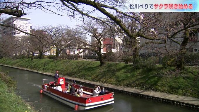 富山市のサクラの名所、松川べりでは、ソメイヨシノの花が咲き始めました。