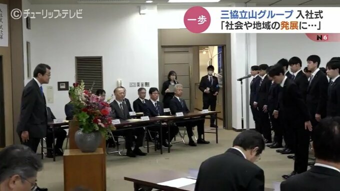 富山県高岡市の三協立山グループの入社式が1日行われ、138人の新入社員が社会人の一歩を踏み出しました。