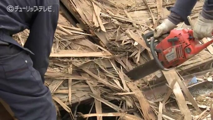 この建物は通学路の市道を塞いでいることから、速やかな撤去が求められていて、きょうは解体業者の作業員が屋根瓦を一枚ずつ手作業で取り除きました。4日からは重機で本格的な解体をおこないます。
