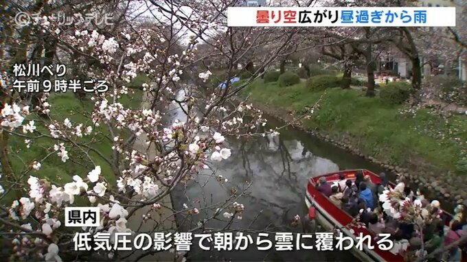 あいにくの空模様となりましたが、富山市のサクラの名所松川べりでは、遊覧船からの景色を楽しむ人で賑わっていました。