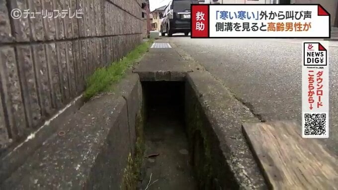 側溝に水はありませんでしたが、この時の富山市の気温は5.3℃。男性は、はだしにサンダル、上下スウェット姿で側溝にすっぽりとはまり、寒さに震えていました。