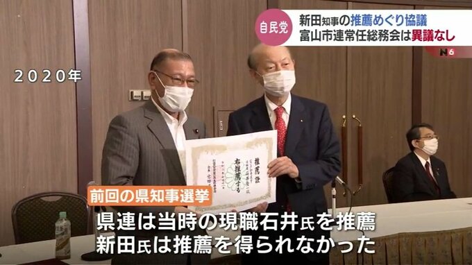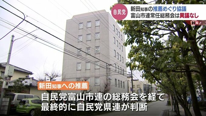 新田知事の推薦については6日開かれる富山市連の総務会を経て、最終的に県連が判断することになっています。