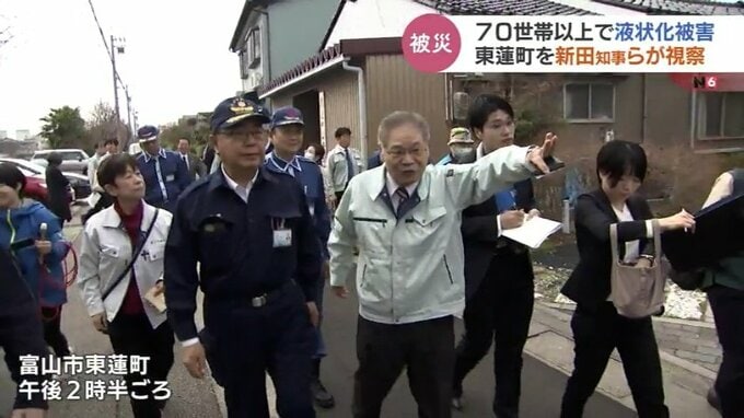 ニュースクリップ 70世帯以上で液状化被害か 富山市の東蓮町を知事と市長が視察 2024年4月4日(木) 20:32 国内 富山市の藤井市長と新田知事は能登半島地震での液状化とみられる被害を受けた東蓮町の状況を4日視察しました。東蓮町を訪れた藤井市長と新田知事。液状化被害で全壊となった住宅や一部損壊でも傾いてしまった住宅…