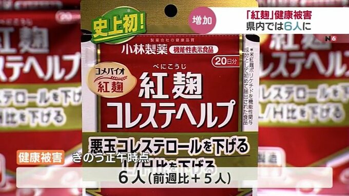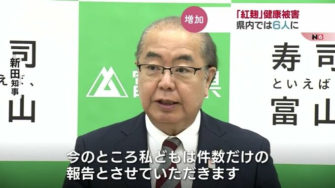 小林製薬の「紅麹」成分を含むサプリメントを飲んでいた人に健康被害が出ている問題です。富山県内で何らかの健康被害があった人の数は9日までに新たに5人増え、6人となりました。