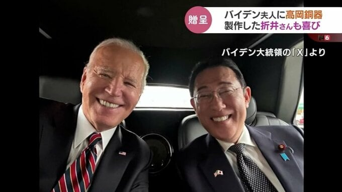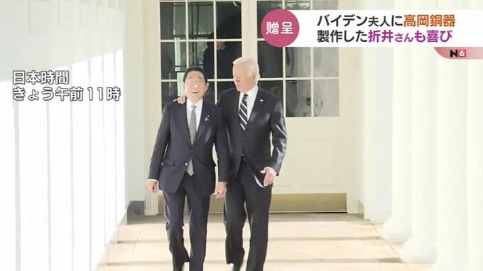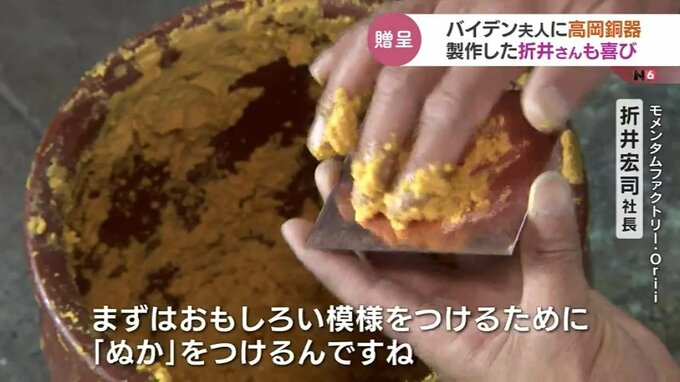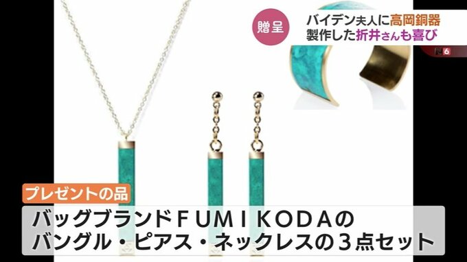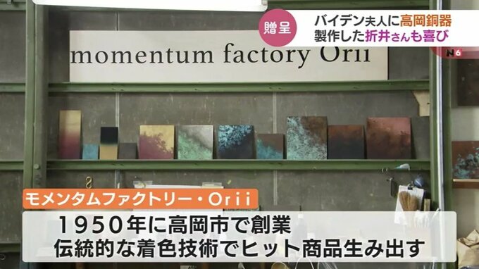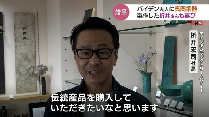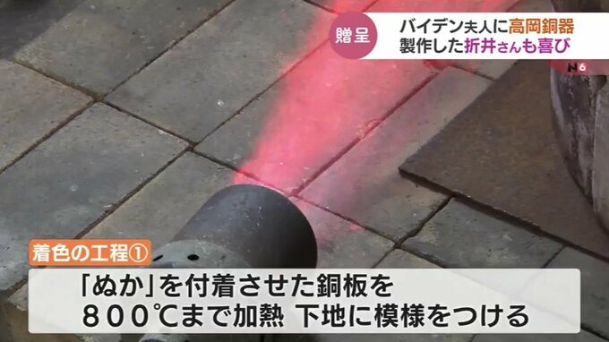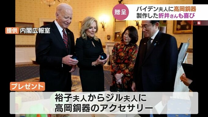 アメリカで行われた岸田総理とバイデン大統領夫妻との非公式の夕食会で、高岡銅器の伝統の技で着色された『アクセサリー』がバイデン大統領の妻に贈られました。着色した高岡市の折井宏司社長は「ついにきたか」と喜びを語りました。