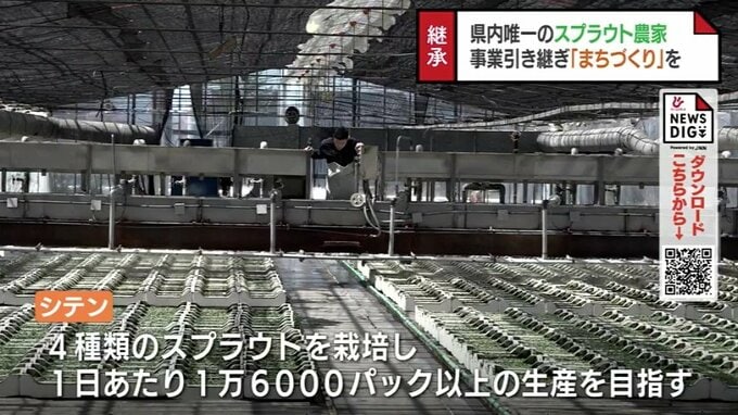 シテンはかいわれや豆苗など4種類のスプラウトを栽培し、一日当たり1万6000パック以上の生産を目指します。また、売り上げの一部をまちづくり活動に還元するということです。