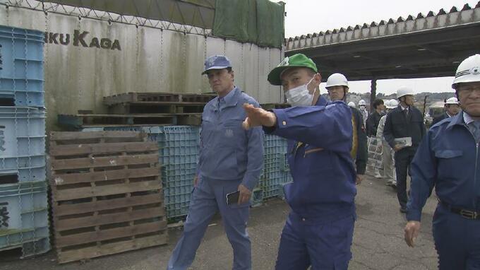 このうち氷見漁港では、能登半島地震の影響で護岸の破損や液状化による地盤沈下などの被害が出ていて、小里補佐官は県職員からの説明を受けながら、被災地を確認しました。