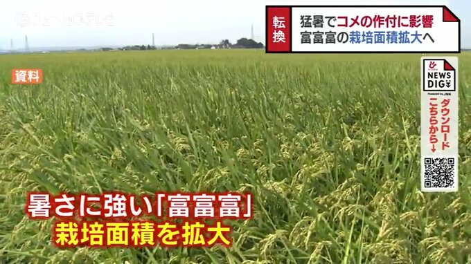 近年の猛暑により「コシヒカリ」の1等米比率が急落していることから富山県は今年度、暑さに強い品種「富富富」の栽培面積を昨年度の1.5倍に拡大します。