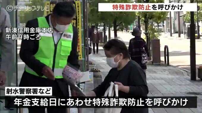 年金支給日の15日、富山県射水市では警察が金融機関などと連携して、高齢者への被害が急増している特殊詐欺への注意を呼びかけました。