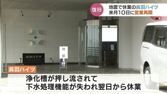 当初はことし9月の営業再開を目指していましたが、新しい浄化槽の設置まで仮設の配管を下水道に接続することで、再開が早まりました。