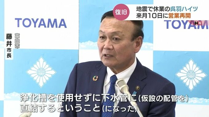 藤井市長:「浄化槽を使用せずに下水管に直結するということ。そこから使い始めるというのが、5月10日にオープンできる最大の要因です」