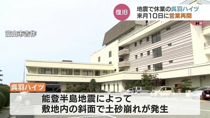 能登半島地震の影響で休業を余儀なくされていた富山市の宿泊施設「呉羽ハイツ」が5月10日から営業を再開します。