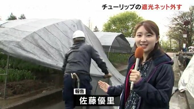 佐藤優里アナウンサー:「チューリップフェアを前におよそ2ヶ月間設置された遮光ネットが次々と撤去されていきます」